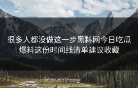 很多人都没做这一步,黑料网今日吃瓜爆料这份时间线清单建议收藏 在这个信息爆炸的时代,有一份信息能够...
