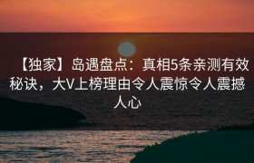 【独家】岛遇盘点:真相5条亲测有效秘诀,大V上榜理由令人震惊令人震撼人心 在社交媒体和内容创作的激烈...