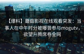 【爆料】蘑菇影视在线观看突发:圈内人在上午时段被曝曾参与爆料,爆红网络席卷全网 近日,一则令人震惊的...